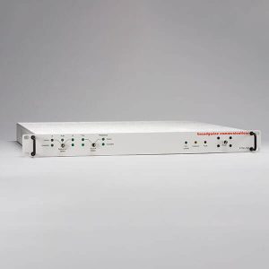 A variety of status indicators are located on the front panel for visual feedback, together with manual controls for source selection The reference frequency outputs are generated from a low phase noise ovenised quartz oscillator (OCXO) that is phase-locked to the reference frequency input. In the event of reference input failure the phase-locked oscillator will continue to provide referenced frequency outputs with a stability of 3X10-9 over temperature. Changeover between references is smooth with no glitch on the output.